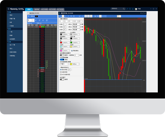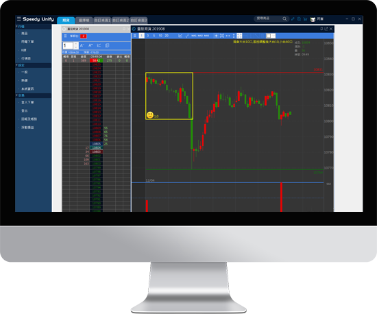 方便進行高速追價、套利、反向舖單設定,並可搭配最細微的行情報價及線圖。