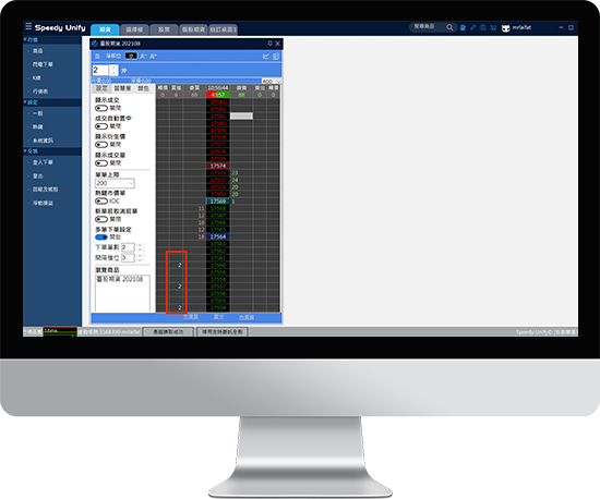 直觀式點擊下單,搭配熱鍵設定,讓您更專注在數字的脤動。